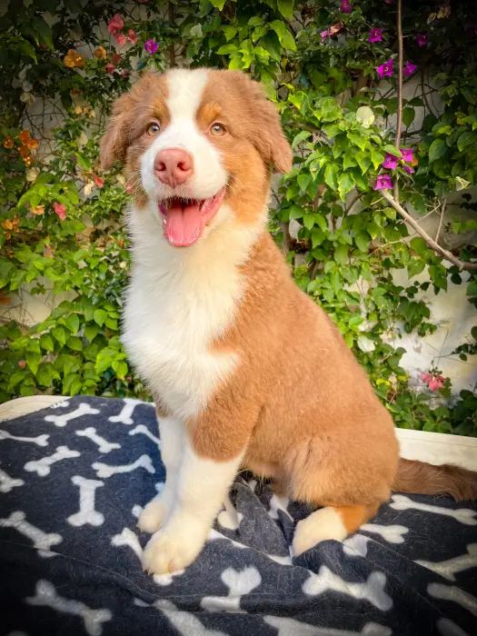 Horus, male Berger Australian de 4 mois couleur rouge tricolor. Vous pouvez suivre notre quotidien sur notre page Instagram https://www.instagram.com/p/CejhGe3rwoE/?igshid=NDBlY2NjN2I=