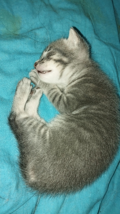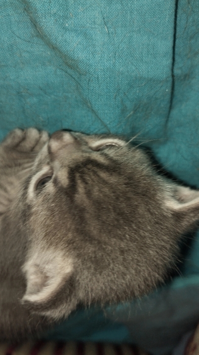 ce petit chaton de 2 semaine, est encore auprès de sa maman. Très mignon, futur chasseur 🐱