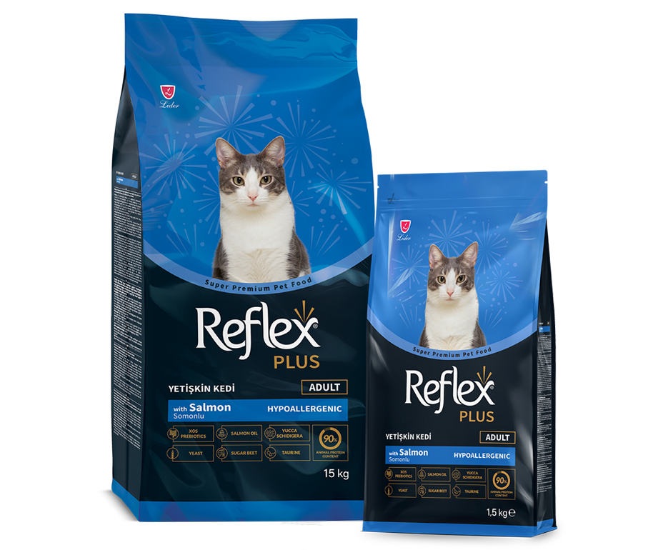 croquettes super premium complet et équilibré pour chats, à base de saumon, convenant à toutes les races de plus de 12 mois.