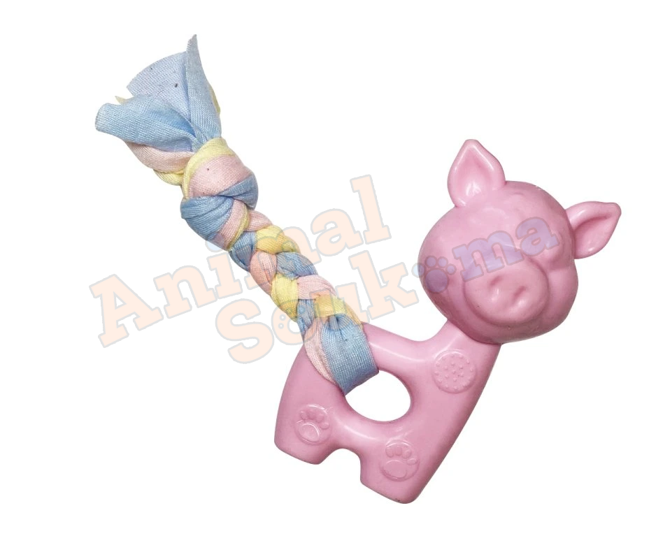 Jouet pour Petits chiens en TPE avec tresse en coton et couineur