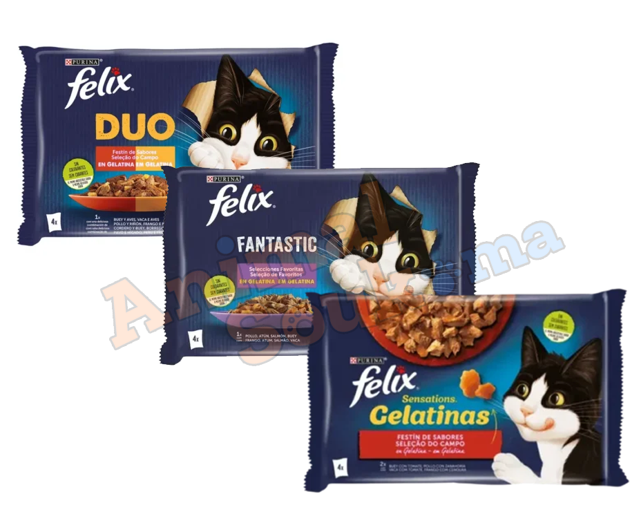purina FELIX est une gamme de plats délicieux qui ont l’air, l’odeur et le goût si irrésistibles qu’ils peuvent ressembler à des aliments cuisinés par vous-même. Chaque recette contient des morceaux tendres qui combinent deux délicieuses variétés de viande et de poisson dans une gelée succulente afin que votre chat puisse profiter de deux de ses saveurs préférées dans la même nourriture.