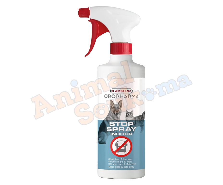 Le spray Versele-laga Oropharma Stop Indoor éloigne les chiens et les chats des endroits que vous souhaitez protéger (plantes, canapés, etc.).